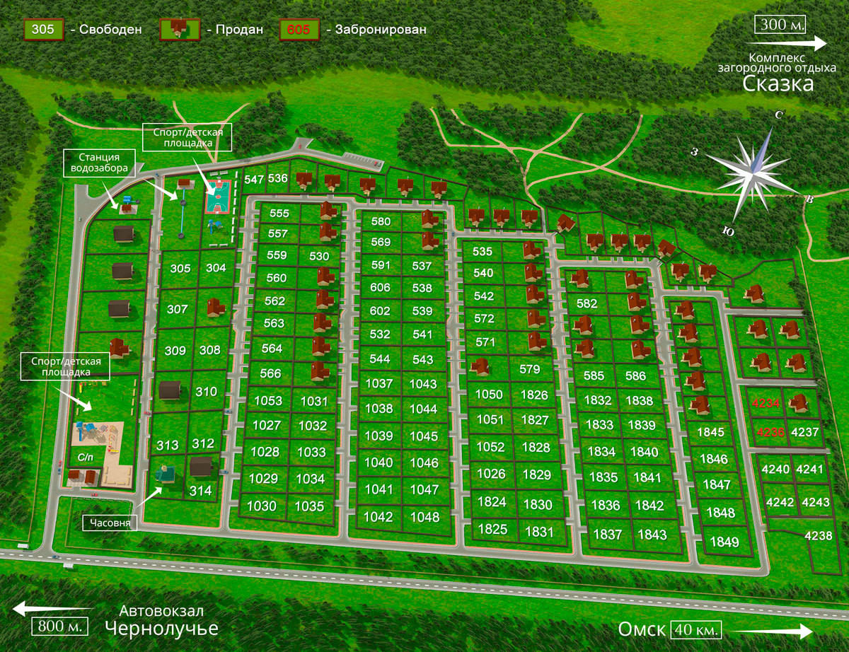 Главным достоинством коттеджного поселка является его уникальное расположение в Чернолученско-Красноярской санаторно-курортной зоне - природной жемчужине г. Омска и Омской области. Реликтовый сосновый бор с вековыми соснами, близость излучины р. Иртыш, открывающей невероятной красоты виды с высокого берега, термальные источники, санатории, базы и дома отдыха - все это способствует созданию благоприятной атмосферы для жизни, отдыха, расслабления и оздоровления. Ориентиром местонахождения может служить комплекс загородного отдыха "Сказка", находящийся в 300 метрах от поселка.
